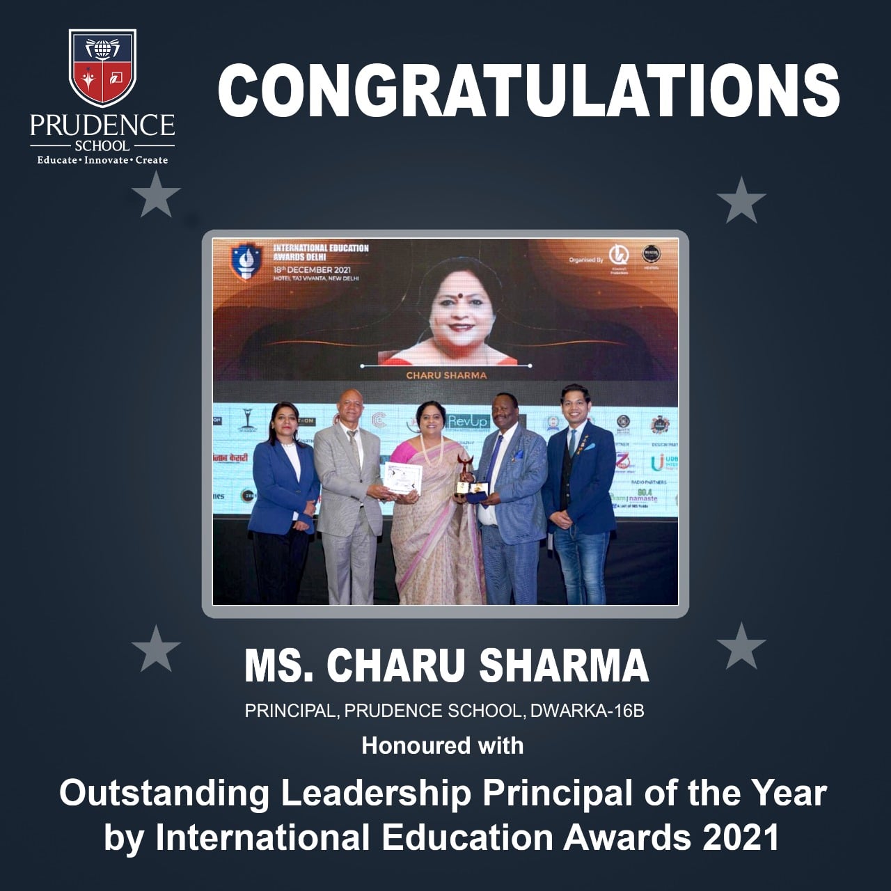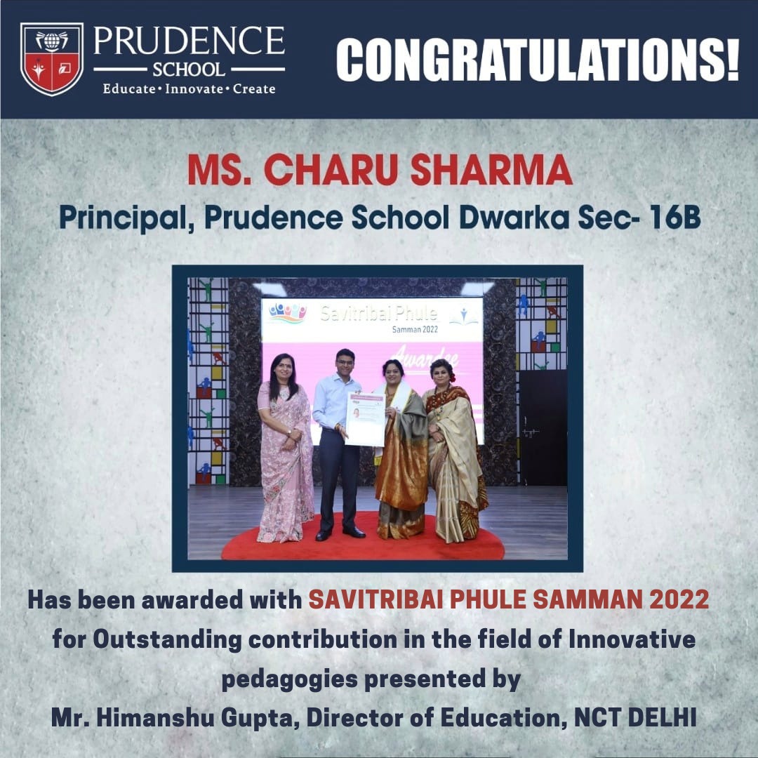 The Prudence family congratulates Ms. Charu Sharma, Principal, Prudence School Dwarka Sector 16B for......