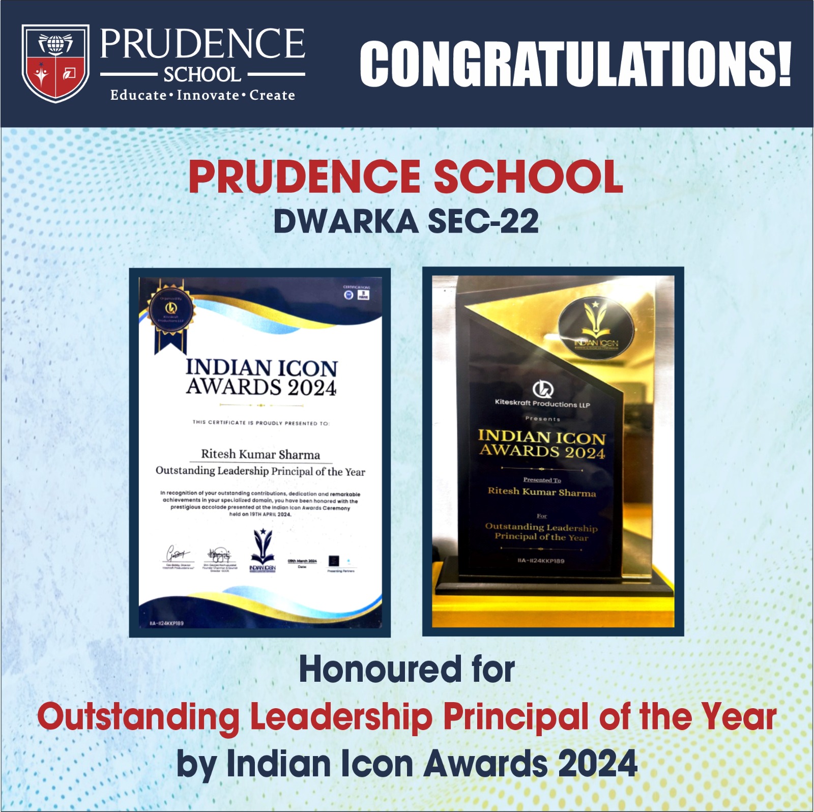 The Prudence family congratulates Mr. Ritesh kumar Sharma, Principal, Prudence School Dwarka Sector ......