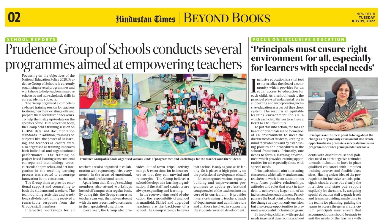 19 Jul Prudence Group of Schools conducts several programmes aimed at empowering teachers Prudence Group of Schools conducts several programmes aimed at empowering teachers... Read more