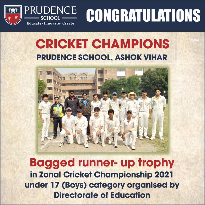 Prudence School congratulates their Cricket Champions for being runner-ups in Zonal Cricket Champion......