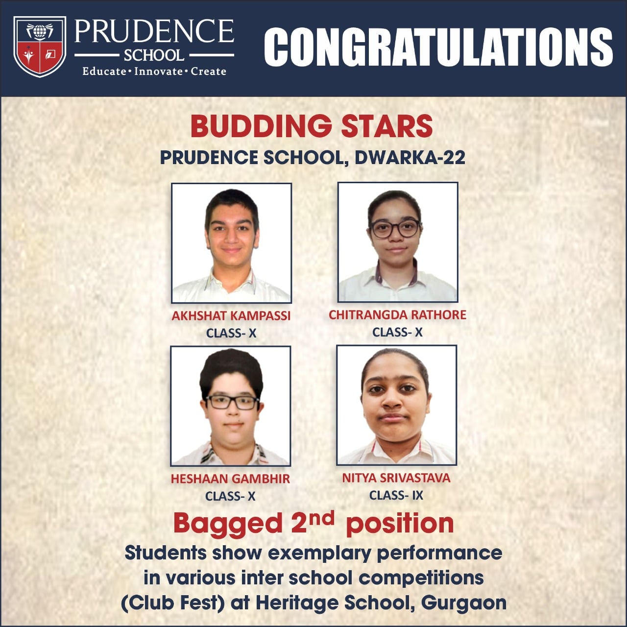 Prudence School, Dwarka 22 expresses heartiest Congratulations to our impactful orators Kartik Rajot......