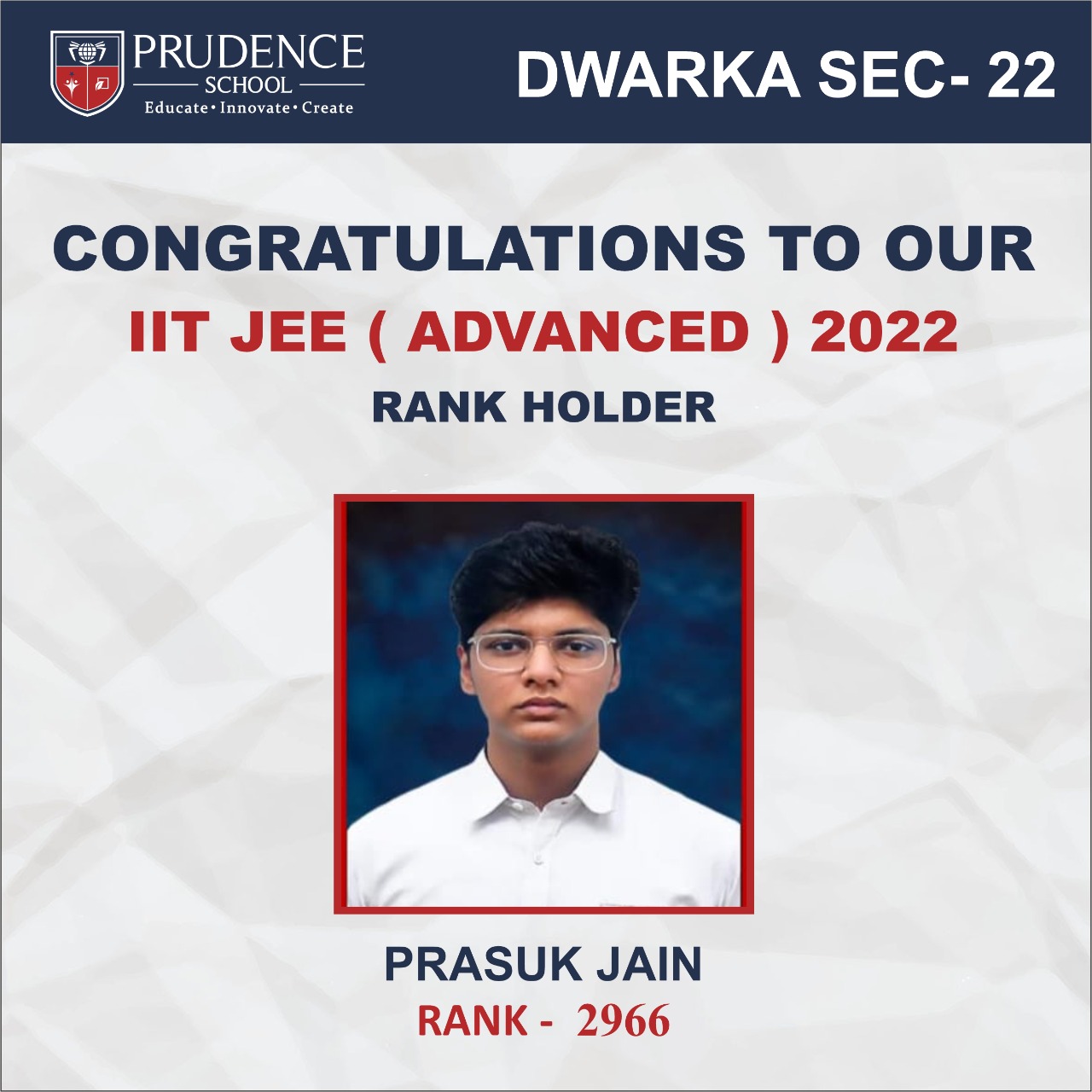 Prudence congratulates its IIT JEE (ADVANCED) 2022 Rank holders#JEEAdvanced #JEEAdvanced2022...