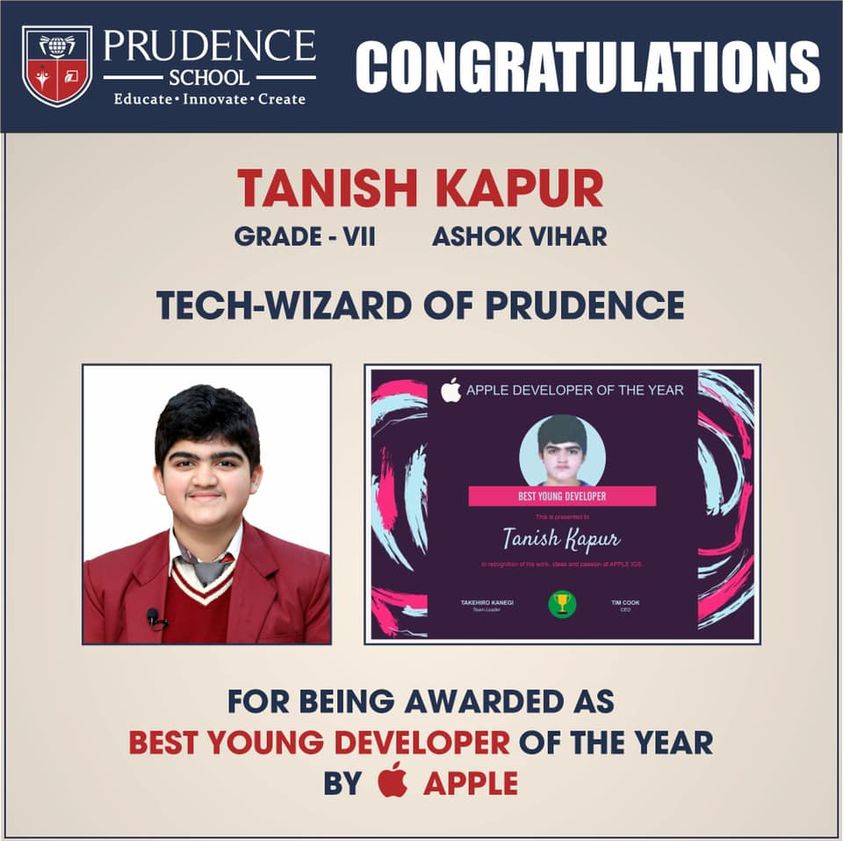 Tech-wizard of Prudence Tanish Kapur of Prudence Ashok Vihar awarded as Best Young Developer of......